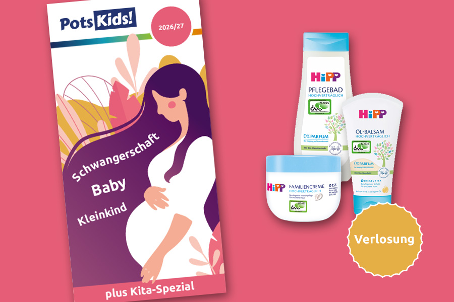 Im Set enthalten sind Pflegebad, Öl-Balsam und Familiencreme. Wenn ihr gewinnen wollt, schickt uns bis zum 2. März eine E-Mail an gewinnen@potskids.de mit dem Betreff „HiPP“.