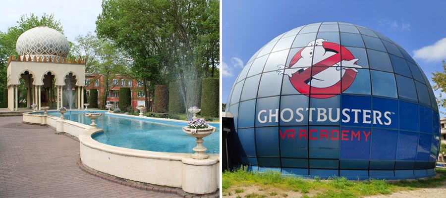 Apropos Klassiker: Auch „Der kleine Muck“ von 1953 stand bei uns bisher nicht auf dem Programm. Die Geschichten aus Tausendundeiner Nacht allerdings schon. Und in die versetzen einen die Gärten des kleinen Muck. Der perfekte Ort für eine kleine Pause, bevor wir uns alle zusammen in Ghostbusters verwandeln. Das VR-Erlebnis kostet extra, ist es aber wert. Ausgestattet mit VR-Brillen und Protonen-Blastern, werden wir zu mutigen Geisterjägern.